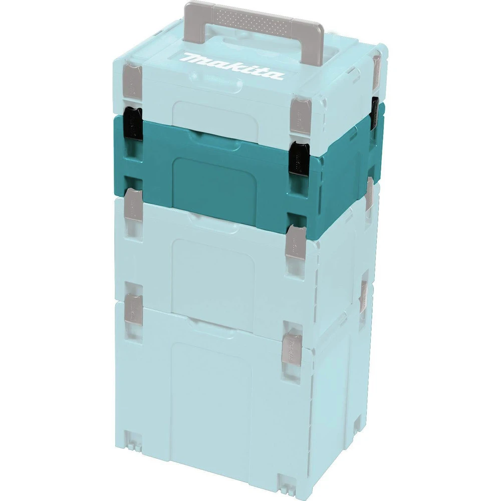 The Makita Interlocking Modular Tool Cases are the latest innovation in power tool storage. The Interlocking Cases were created as a solution to efficiently organize and transport an ever increasing stable of power tools. This 197211-7 Medium Case has a 5-1/8 in. interior depth perfect for drills, batteries, chargers, and other smaller sized tools you many need for the job. As the title states it, all of these Makita cases are interlocking. Use the same latch you would use to close the case, to link cases together. It’s the perfect accessory to keep all your tools organize and free from harm.