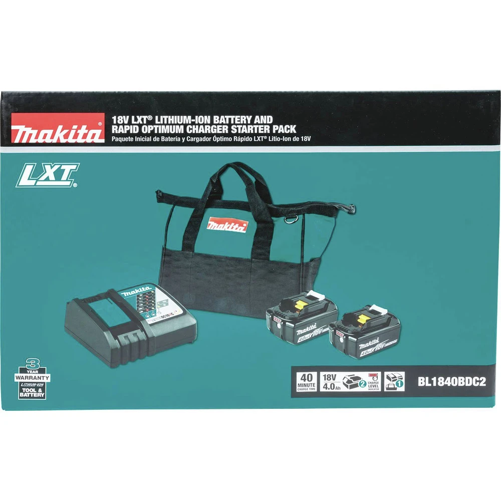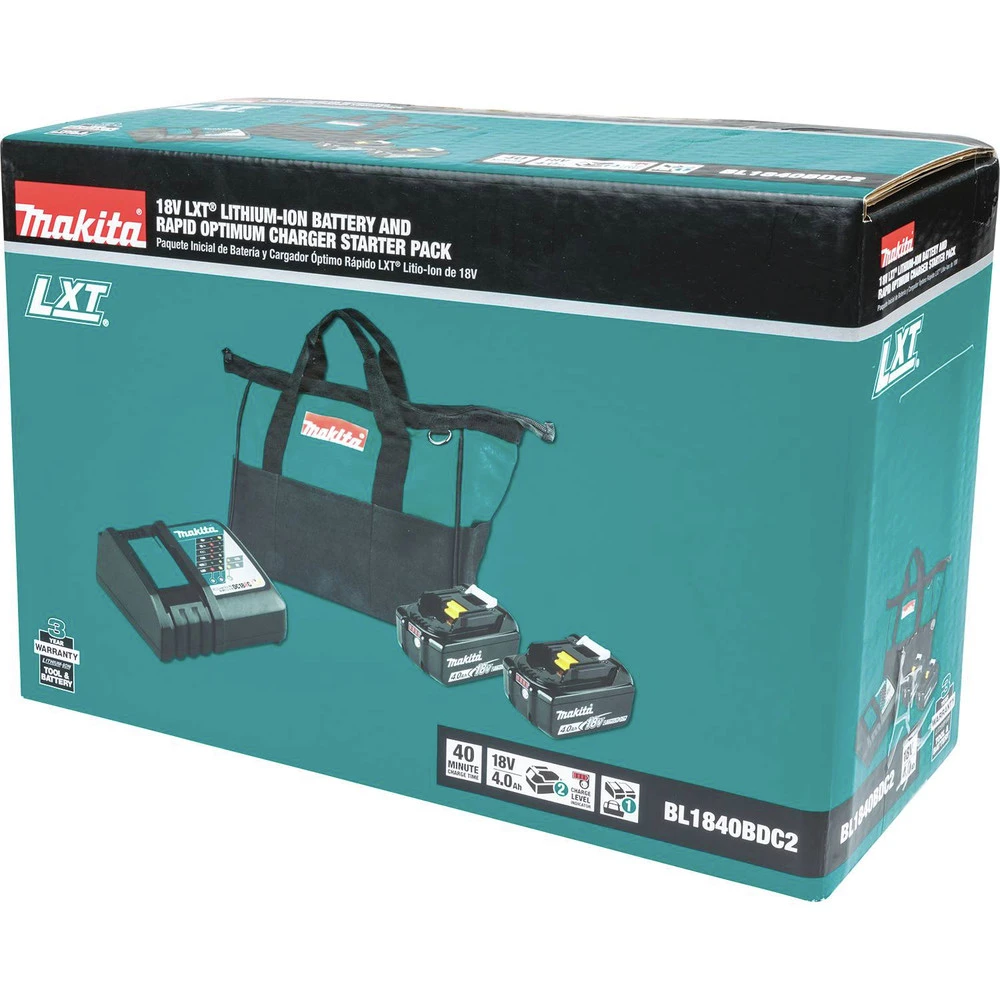 - 18V LXT Lithium-Ion 4 Ah battery reaches a full charge in 40 minutes or less