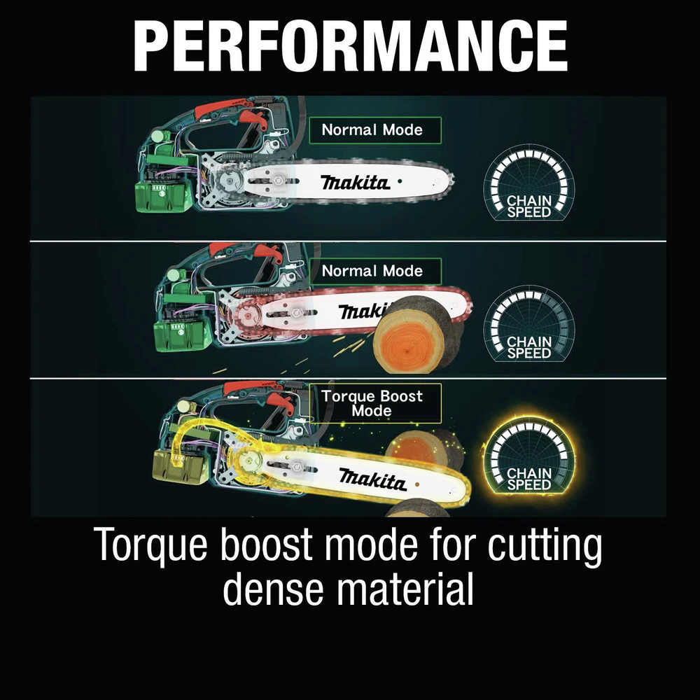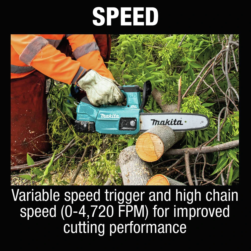 - Variable speed trigger and high chain speed (0 – 4720 FPM) for improved cutting performance