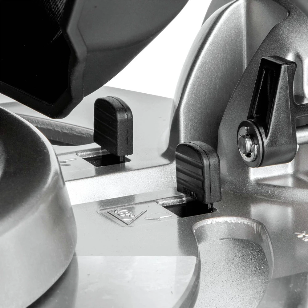 - Unique 2-Steel Rail Sliding System design offers single slide-glide operation; reduced saw footprint allows operation flush against a wall