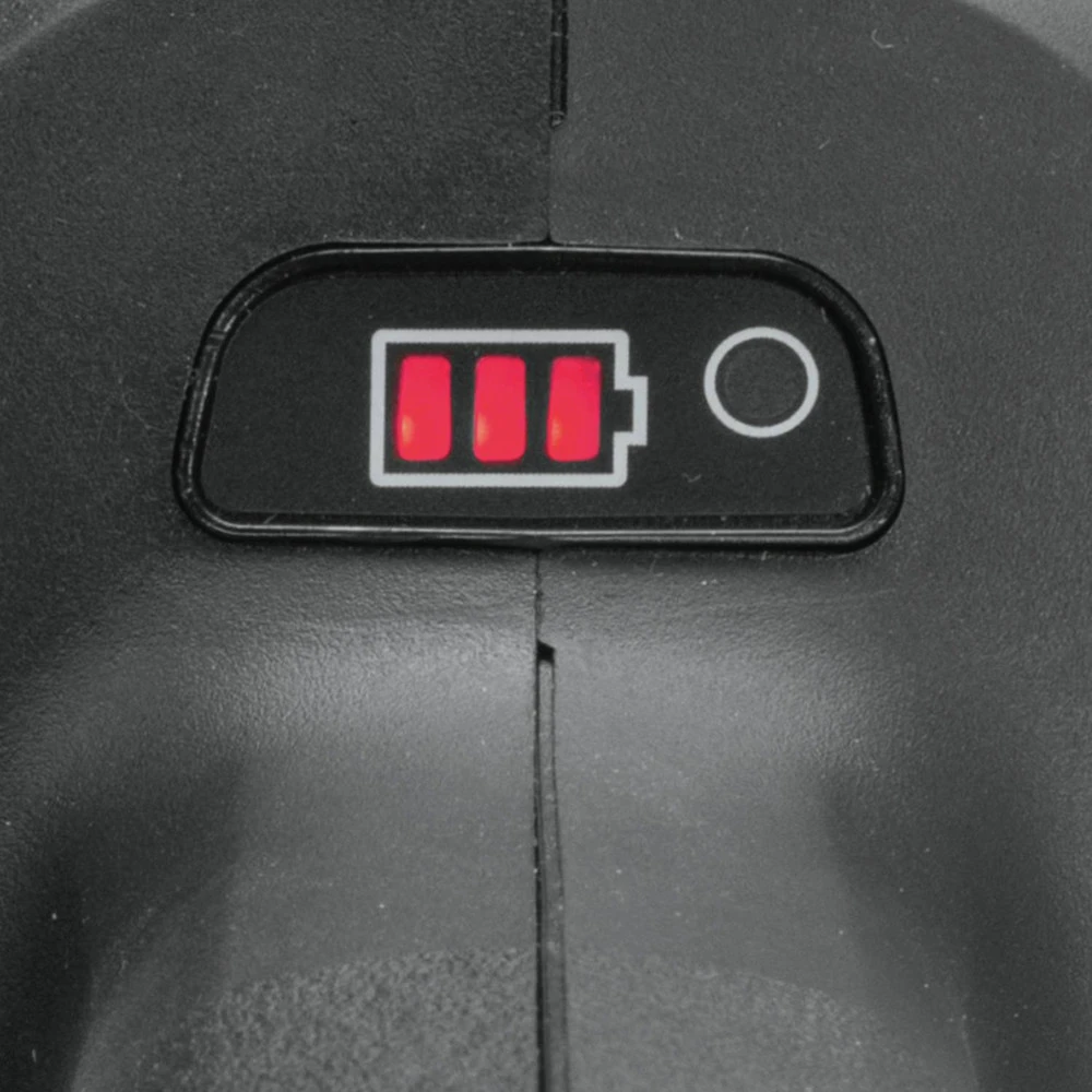 - 3-Stage LED gauge indicates battery charge level