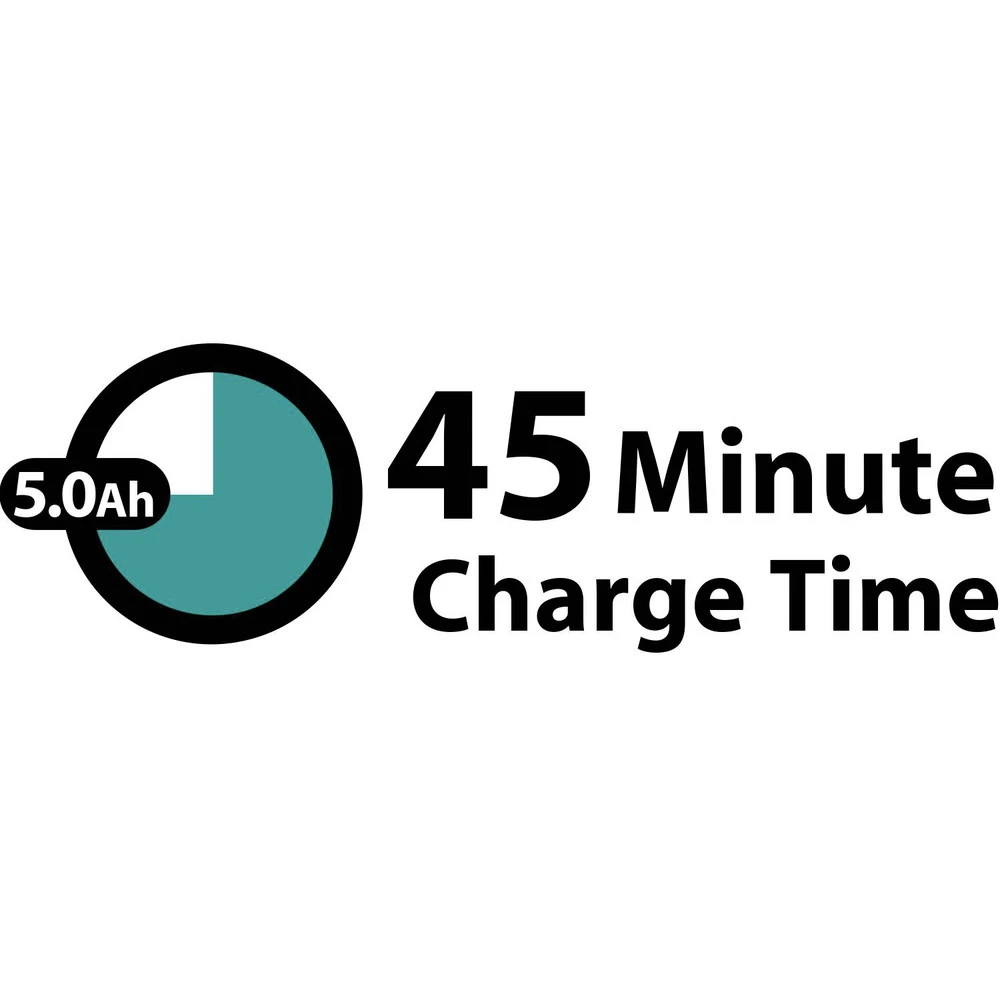 - 18V LXT Lithium-Ion 5 Ah battery BL1850B reaches a full charge in 45 minutes or less