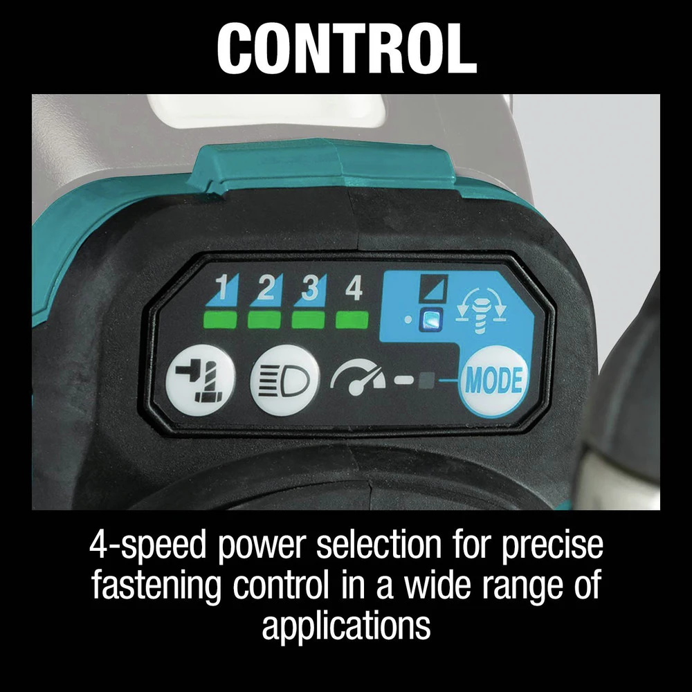 - 4-Speed power selection switch (0 – 500 / 0 – 1200 / 0 – 1900 / 0 – 2200 RPM and 0 – 1000 / 0 – 1700 / 0 – 2400 / 0 – 2700 IPM) for precise fastening control in a wide range of applications
